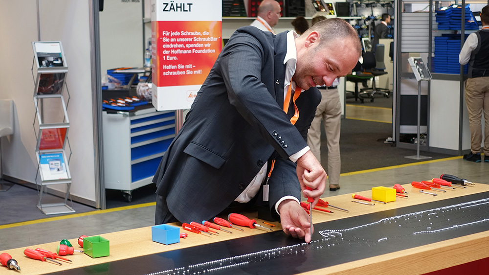 Our screw-driving station was a real highlight – and it was not just for show: Visitors were able to try out different screw profiles and screwdrivers for themselves at the screw-driving station. In doing so, they were also doing something good: For each screw that was driven, PB Swiss Tools made a contribution to the foundation of our sales partner. Under the motto «Tools create value», our sales partner supports institutions that promote the development of disadvantaged and traumatized children and adolescents.