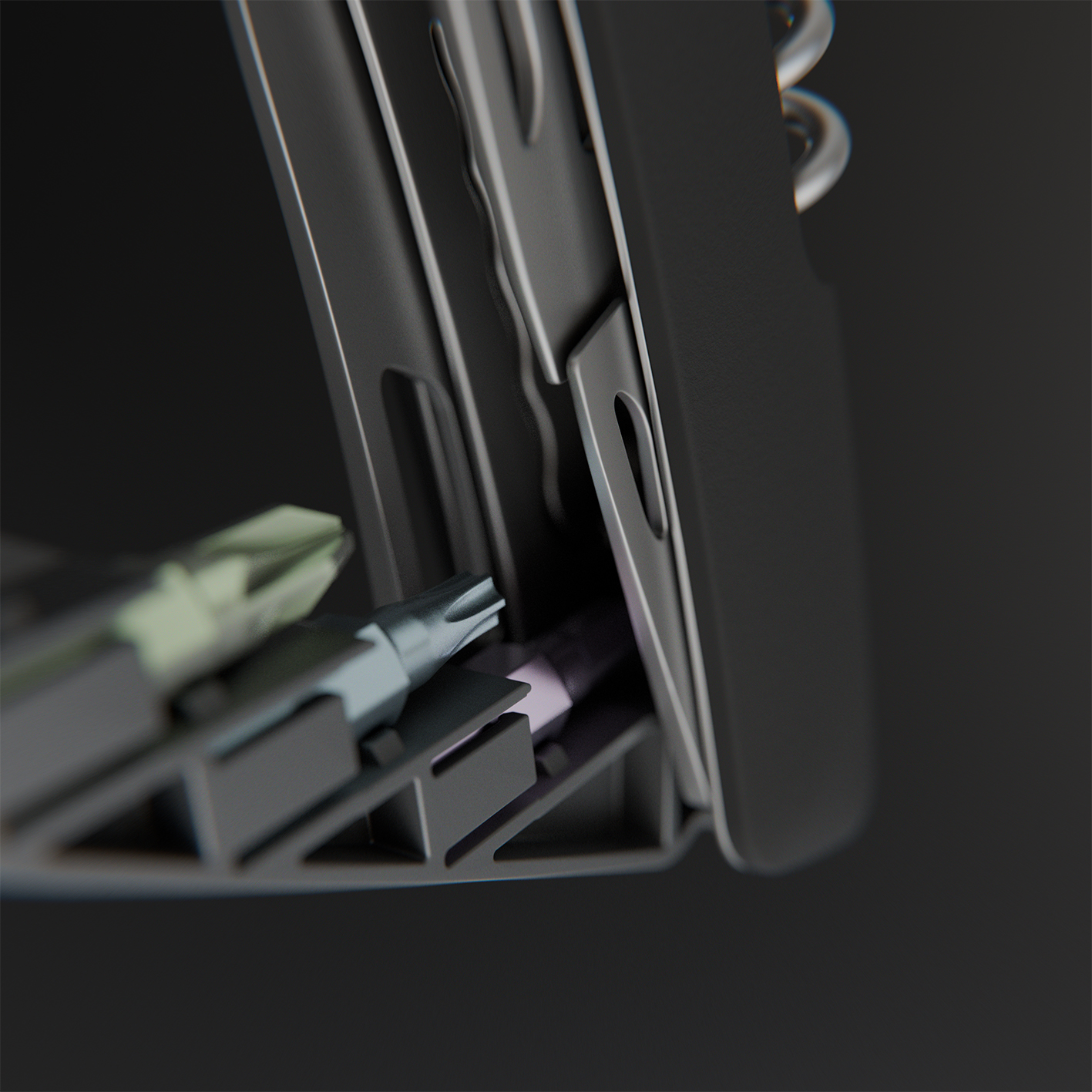 The result of this collaboration is a pocketknife integrating a bit holder directly into its structure, along with four interchangeable PB Swiss Tools bits. lt allows users to quickly carry out adjustments or repairs, whether during year-round outdoor activities or for everyday maintenance tasks, from home repairs to light mechanical work.