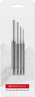 'Safety pin punch, drift punch, knurled, set in self-service packaging for safe drift punching of rivets, pins, bolts or connecting elements cylindrical pin with outstanding hardness and toughness, extremely