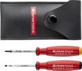 'SwissGrip Evo screwdriver set, in a small imitation leather case for slotted and Phillips screws with the same blade length precise, true-to-size tips, optimal fit in the screw heads the SwissGrip Evo’s [...] exceptional elasticity coupled with with high hardness laser-marked serial number, lifetime guarantee ,PB 38535'