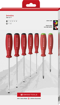 elasticity coupled with with high hardness laser-marked serial number, lifetime guarantee ,PB 8240.RB,PB 8240.RB CBB' [...] 'SwissGrip screwdriver set with wall mount for slotted screws parallel tip, optimum transmission of force, no cam-out convex handle with soft surface, pleasant grip and high torque transmission color coded
