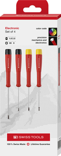 screwdrivers with turnable head for small and micro slotted screws in the electronics and precision mechanics sector precise, true-to-size tips, optimal fit in the screw heads two-component handle with [...] with soft casing, comfortable handling color-coded turnable head, for fine tightening and adjustment work and quick profile recognition high-quality materials used, resistant to solvents, oils, acids and salts