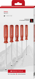 'Set di giraviti Classic in scatola di cartone d’alta qualità per viti ad intaglio, impiego universale punta parallela, trasmissione ottimale della forza, nessun effetto di giro a vuoto (no cam-out effetto)