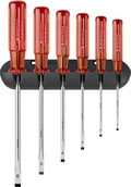 'Set di giraviti Classic con supporto a parete per viti con intaglio punta parallela, trasmissione ottimale della forza, nessun effetto di giro a vuoto (no cam-out effetto) impugnatura sottile, salvaspazio