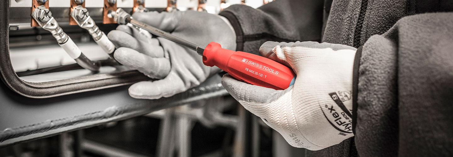 Il cuore di ogni locomotiva è il suo convertitore di corrente. Per gli installatori il peso e la dimensione di questo componente rappresenta una vera e propria sfida. Pertanto fanno affidamento su utensili dalla forma ergonomica come i giraviti con impugnatura SwissGrip, che si contraddistinguono inoltre per il rivestimento in morbido Santoprene non irritante per la pelle. L'impugnatura offre una presa perfetta e garantisce un buon momento torcente anche nel caso in cui l'utilizzatore avesse le mani sporche o unte. L'acciaio per molle utilizzato per gli steli dei giraviti è composto da una lega speciale. Questa lega è stata ottimizzata con i nostri fornitori lungo un periodo di tempo di diversi decenni. Un acciaio per molle di prima qualità – estremamente tenace e duro. Ciononostante ha raggiunto elevati livelli di elasticità, cosa che rende gli utensili in pratica quasi indistruttibili.